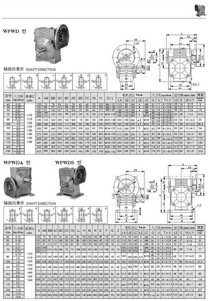 WPWD,WPWDA,WPWDS型型號參數圖表