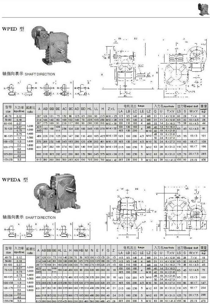WPED,WPEDA型型號參數圖表