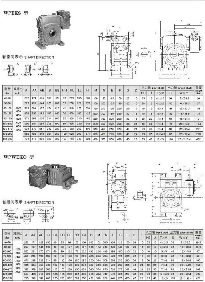 WPEKS,WPWEKO型型號參數圖表