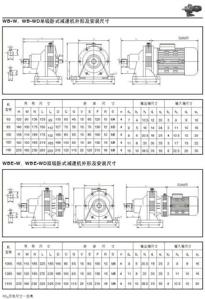 WB-W.WB-WD單級臥式減速機外型圖,安裝尺寸WBE-W . WEB-WD雙級臥式減速機外型圖,安裝尺寸