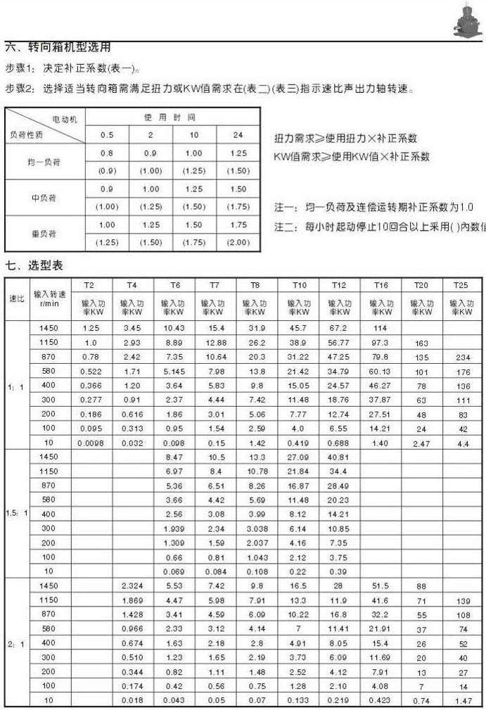 轉向箱機型選用,選型表