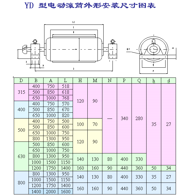 YD油冷式電動滾筒參數: